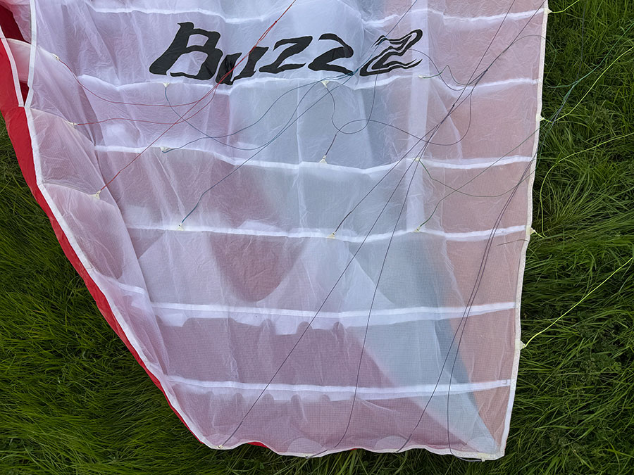This listing is for a VERY lightly used Ozone Buzz Z Paraglider in size Extra-Large with a Stuff Sack as shown in photos (no backpack or Saucisse)- NO HARNESS, NO HELMET. Glider is in excellent shape, with about 12 hours of flight time - it is essentially new. It was only used by the original owner until I flew it at the Salton Sea Gathering with my TrikeBuggy this year (2026, shown in the video below). No damage, no tears, no repairs, all original risers and lines. Color is as shown in pictures, size XL. Recommended Flying Weight (kg): 110-130. This glider was produced circa 2007. This glider works great for Foot Launched Free Flying, Paramotoring or PPG Trikes. Super stable and prdictable wing. When using this glider for Paramotor Powered Flight, the upper Flying Weight can be extended, as shown here for the current Ozone Mojo PWR 2 Glider size 30: