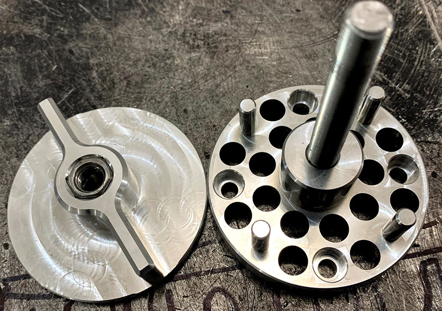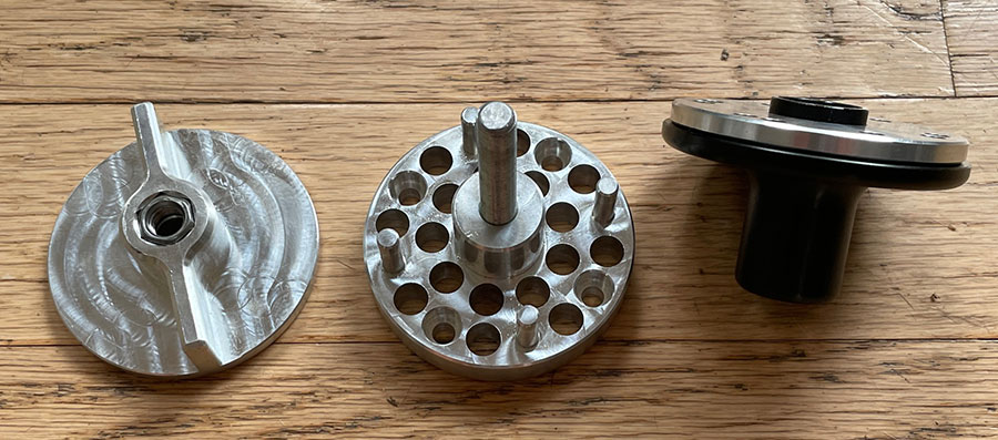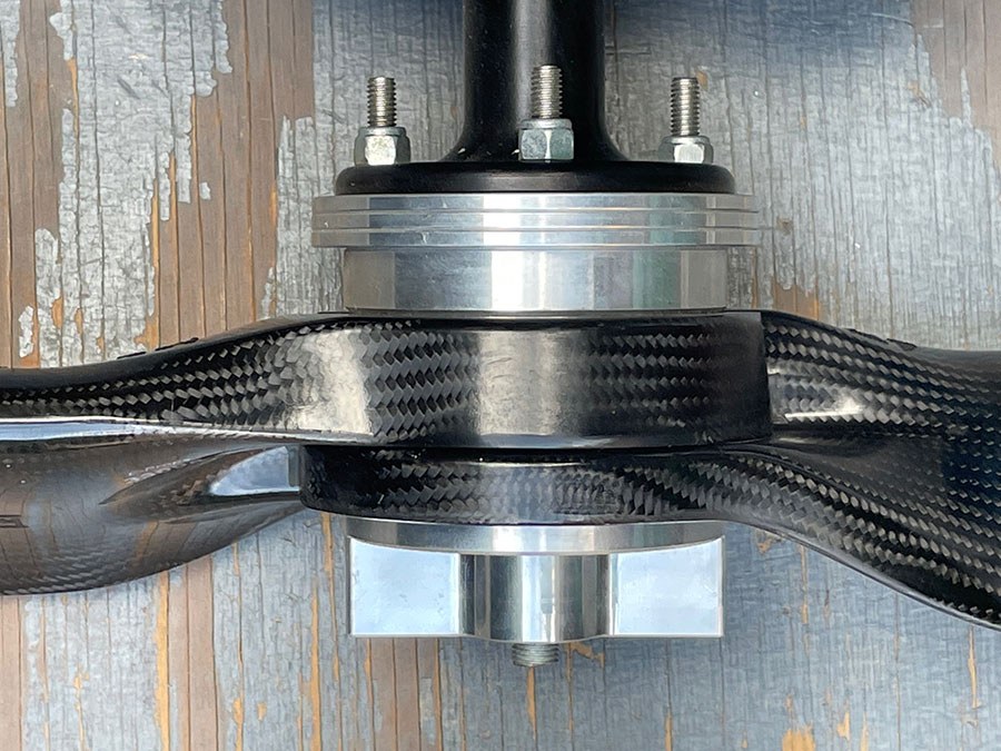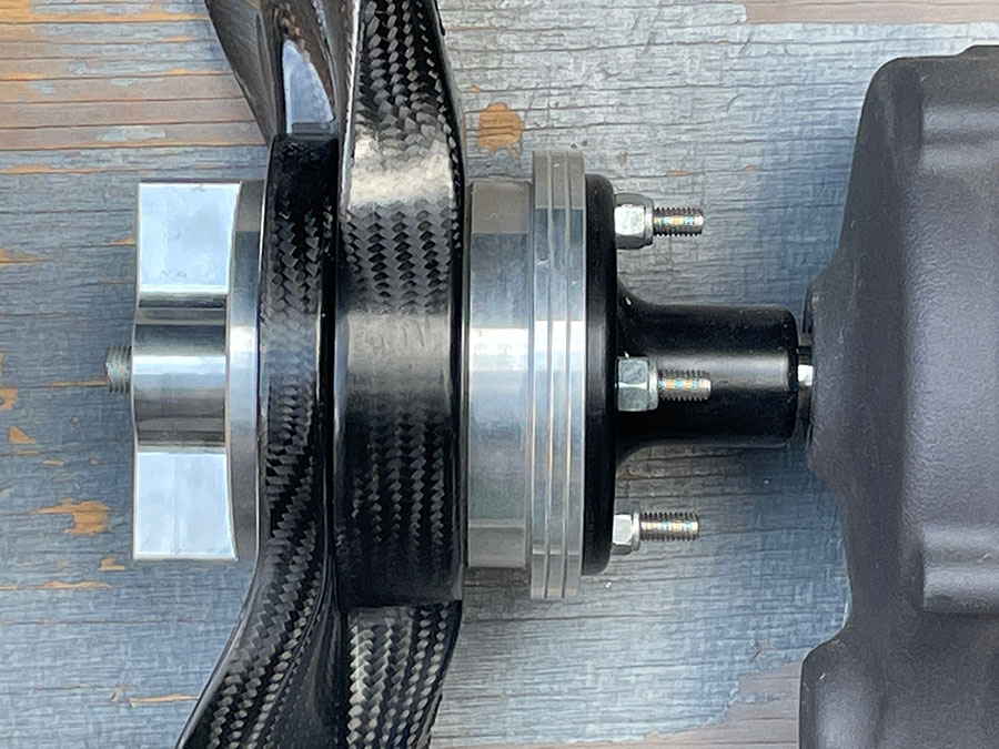 - Place the spacer on the hub first, then add the base plate and secure to the hub with four Propeller Bolts (only one thicker spacer is needed).