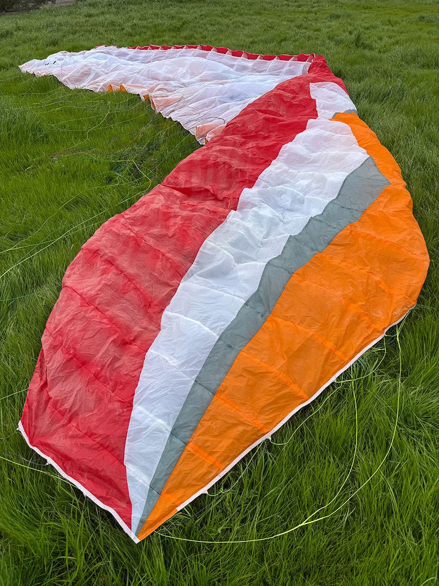 This listing is for a VERY lightly used Ozone Buzz Z Paraglider in size Extra-Large with a Stuff Sack as shown in photos (no backpack or Saucisse)- NO HARNESS, NO HELMET. Glider is in excellent shape, with about 12 hours of flight time - it is essentially new. It was only used by the original owner until I flew it at the Salton Sea Gathering with my TrikeBuggy this year (2026, shown in the video below). No damage, no tears, no repairs, all original risers and lines. Color is as shown in pictures, size XL. Recommended Flying Weight (kg): 110-130. This glider was produced circa 2007. This glider works great for Foot Launched Free Flying, Paramotoring or PPG Trikes. Super stable and prdictable wing. When using this glider for Paramotor Powered Flight, the upper Flying Weight can be extended, as shown here for the current Ozone Mojo PWR 2 Glider size 30: