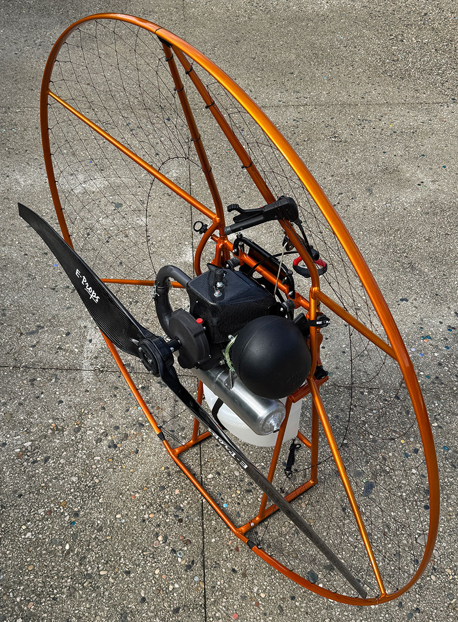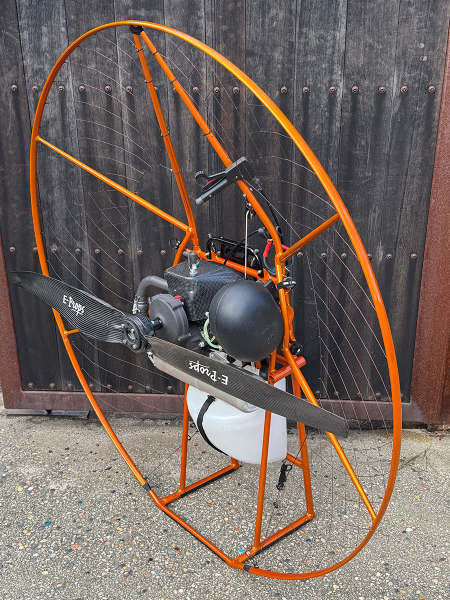 Please note: This listing is for the 12L Miniplane Rigid Cage 140 ABM Paramotor with the E-Props 135cm propeller & 2-piece Rigid Cage - no glider or helmet is included. The Paramotor does include the specially designed E-Props 135cm Propeller, Harness and Throttle. Color of this unit is Metallic Orange. This 2-part Rigid Cage Paramotor includes the reliable and time-proven Top 80 engine (shown in the photos). Email info@AmericanParagliding.com or call or text Chad at 805-403-1859 for interest or questions regarding this paramotor.