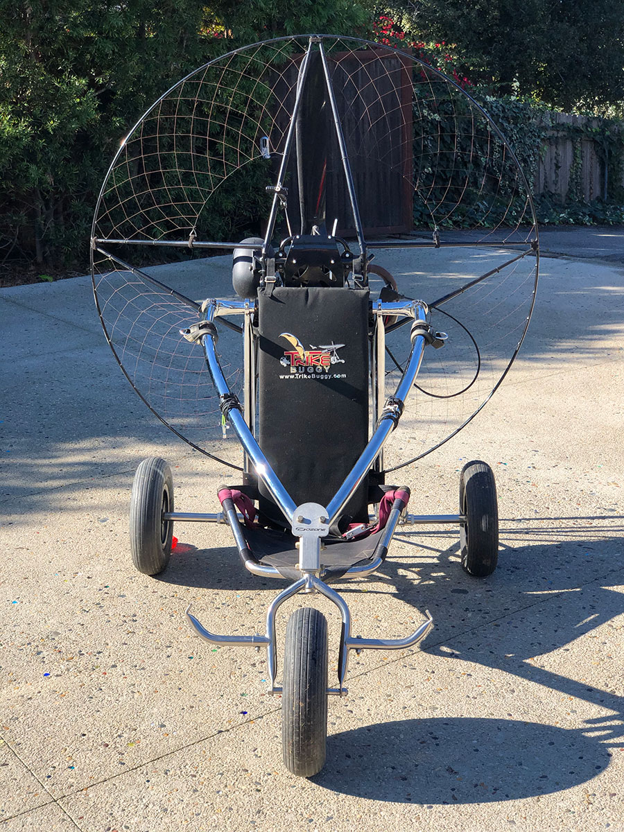 TrikeBuggy Mini-Bullet V3.2 with Narrow Wheels coupled with a Miniplane Top 80 Rigid Cage 150 Paramotor. Please note: Black Miniplane has sold - new color is Metal Blue (see our other listing) A really nice PPG Trike setup at a great price! Contact me at the number below for more information. |