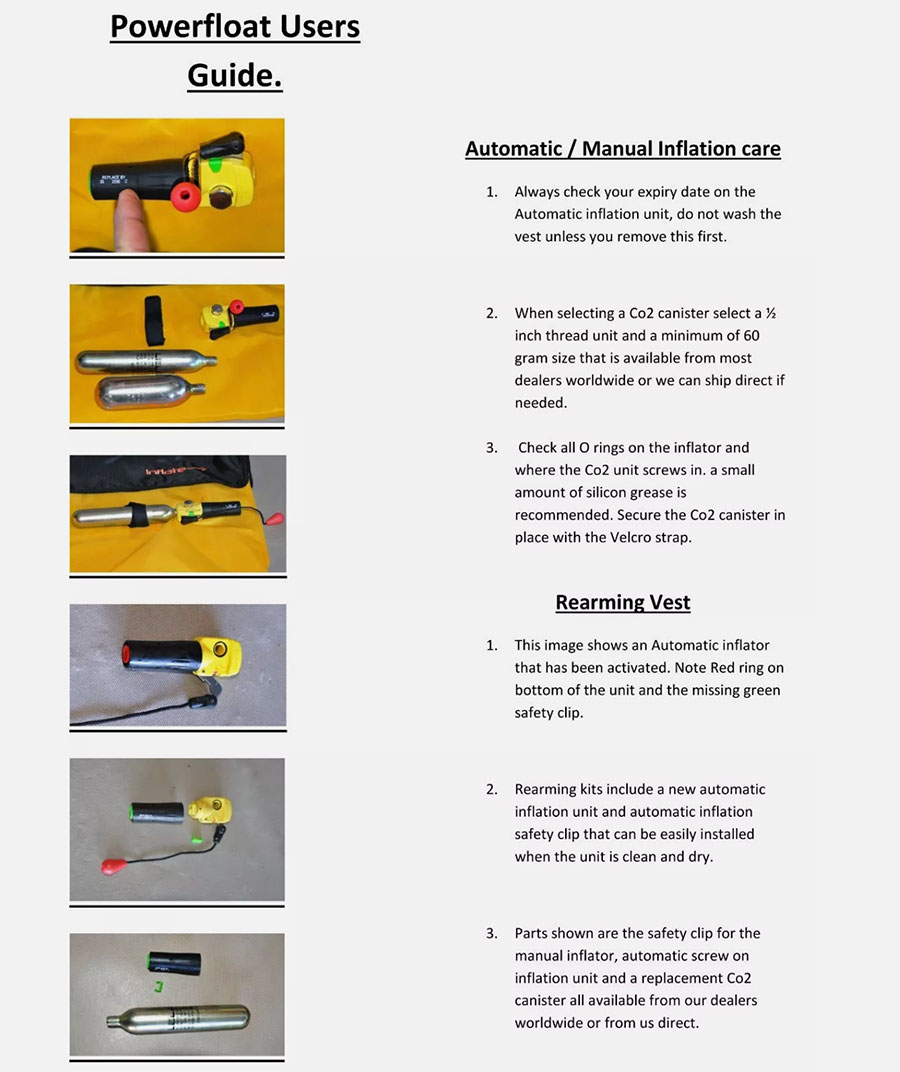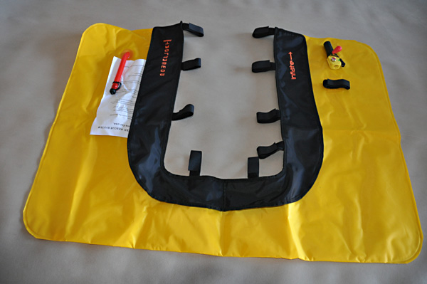 The Powerfloat is a larger U shaped life vest made to fit a PPG frame with more flotation designed exclusively for the powered paraglider & paramotor community. The Powerfloat U shaped vest weighs approx 2 lbs. Please note: This listing is for the Powerfloat only, no Paramotor is included. Co2 Cartridge is included. Supplied with the UML Pro Sensor Inflator (approx 2 year replacement, 1 year if humid). Please note: All life vests should be replaced after 4 years, this is standard industry practice for self inflating vests as the reliability after that can not be 100% guaranteed due to exposure to the elements and wear and tear. Powerfloat vests need complete replacement every 4 years. Please note: The Powerfloat must be properly installed on the FRAME, not the harness, or damage will occur. These are not meant to be load-bearing. Bouyancy: The Powerfloat U-Shaped has a size of 420N.