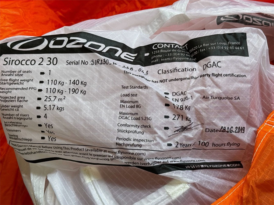 This listing is for a VERY lightly used Ozone Sirocco 2 PPG Power Glider in size 30m with an Ozone Easy Bag Stuff Sack- NO HARNESS, NO HELMET. Glider is in excellent shape, with about 12 hours of flight time. It was only used by the original owner (myself) with the TrikeBuggy - this glider also works great with PPG Trikes. No damage, no tears, no repairs, all original risers and lines. Color is as shown in pictures, size 30m. Recommended Flying Weight (kg): 110-190. This item is available for Certified PPG Paramotor and/or PPG Trike Pilots only, you must be able to confirm this and verify with references prior to purchasing.