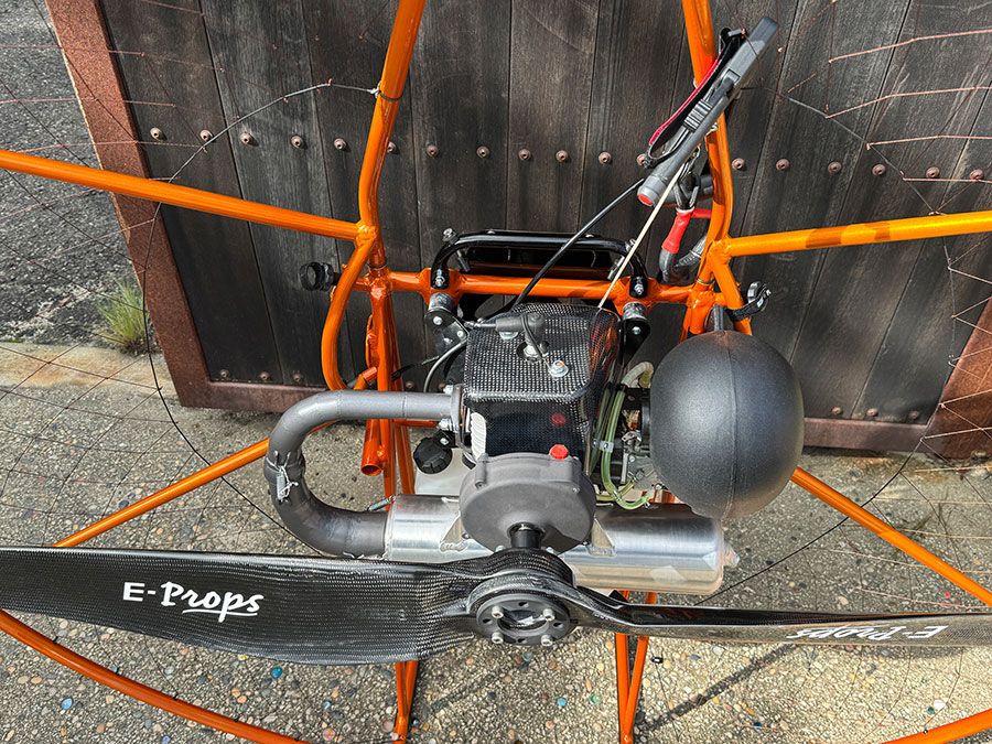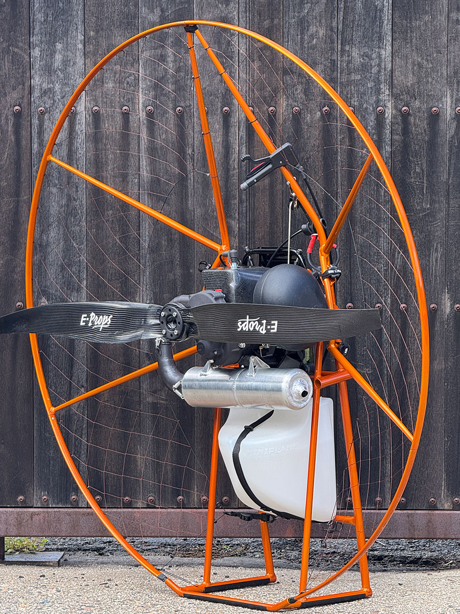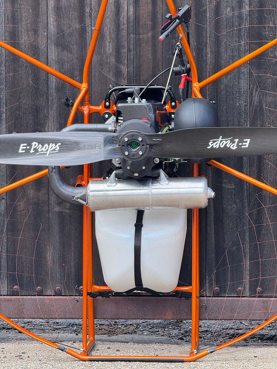 Please note: This listing is for the 12L Miniplane Rigid Cage 140 ABM Paramotor with the E-Props 135cm propeller & 2-piece Rigid Cage - no glider or helmet is included. The Paramotor does include the specially designed E-Props 135cm Propeller, Harness and Throttle. Color of this unit is Metallic Orange. This 2-part Rigid Cage Paramotor includes the reliable and time-proven Top 80 engine (shown in the photos). Email info@AmericanParagliding.com or call or text Chad at 805-403-1859 for interest or questions regarding this paramotor.