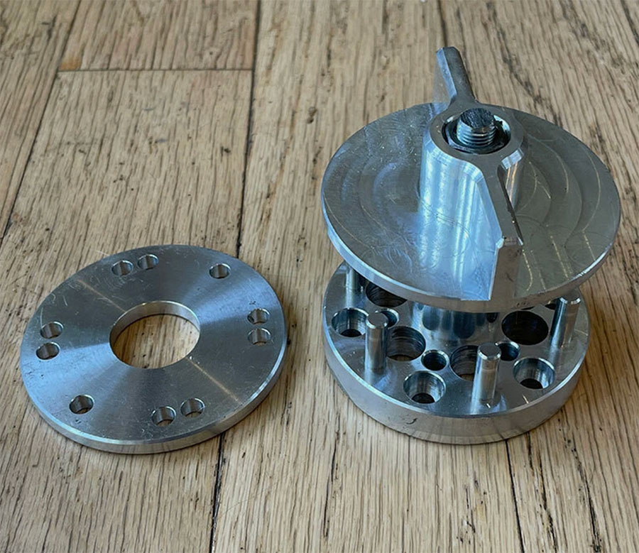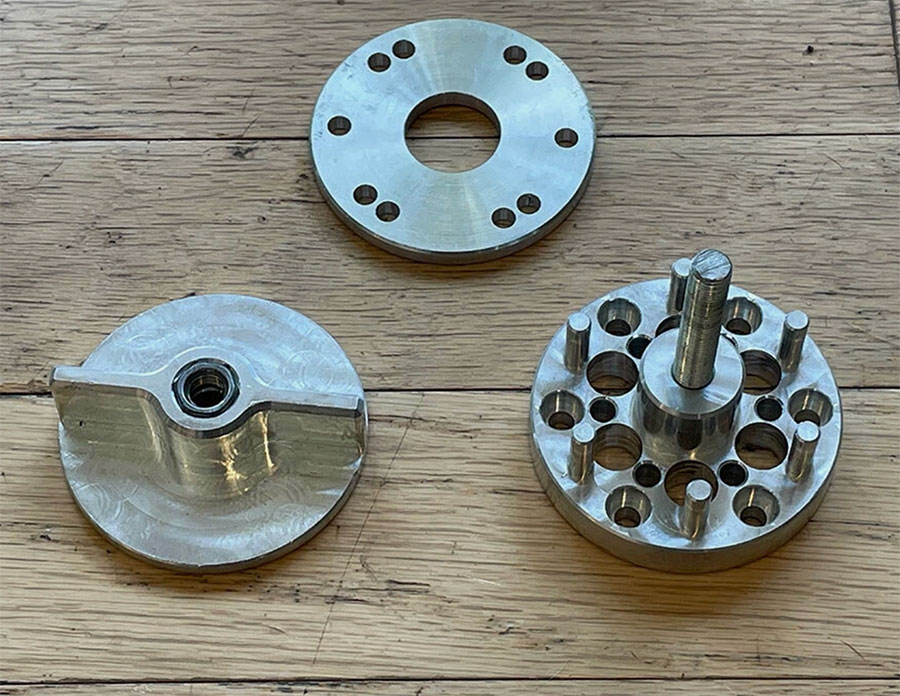 - Place the spacer on the hub first, then add the base plate and secure to the hub with four Propeller Bolts (only one thicker spacer is needed).
