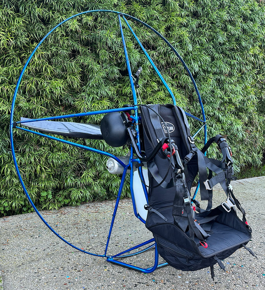 PRE-TARIFFS! Take advantage of stock that we bought before the tariffs went into effect! The regular price of this paramotor now is $7,200!This listing is for a USED Miniplane Rigid Cage 150 4-Piece Cage Paramotor with the Top 80 Engine with a clutch. This Paramotor has only 2 flights on it so far, it was built to show at the recent "Brad Apples Fly-In" in Utah this fall. It is a beautiful Metal Blue Frame and Cage with the reliable Top 80 Engine with a 17:75 Redrive swinging a 135cm E-Props Propeller made for this unique Gearbox. Please note: This listing is for the Miniplane Rigid Cage 150 Paramotor with 4-Piece Cage with the 135cm E-Props Carbon propeller - no glider or helmet is included. This product is for Certified Paramotor pilots only, you must be able to confirm this and verify with references prior to purchasing this item or confirm that you are engaged in training with a certified Instructor. See more information about this Paramotor HERE. Email info@AmericanParagliding.com or call or text Chad at 805-403-1859 for interest or questions regarding this paramotor. Photos: